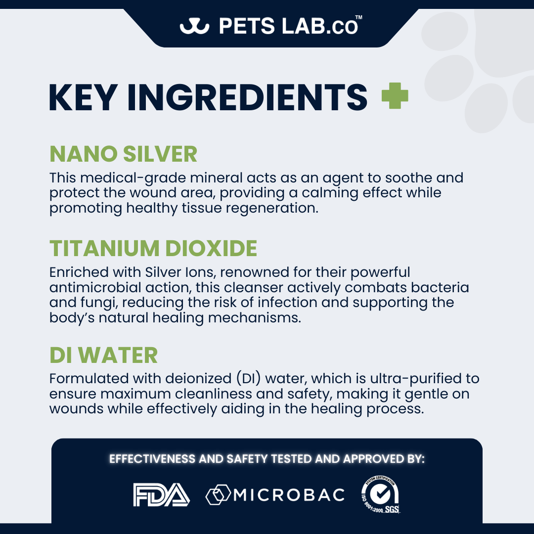 Nano Silver: This medical-grade mineral acts as an agent to soothe and protect the wound area, providing a calming effect while promoting healthy tissue regeneration.